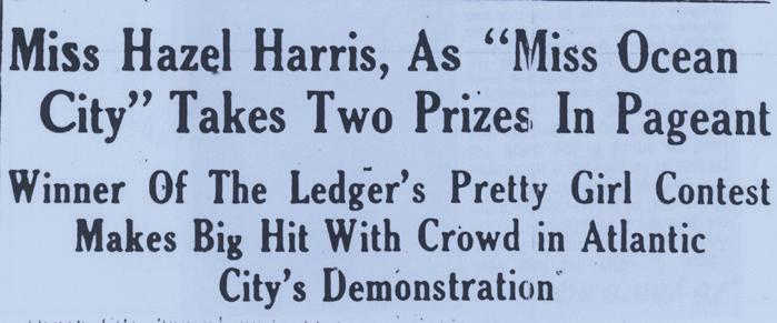 The September 10, 1921 Ocean City Ledger reported: “Ocean City figured quite prominently in Atlantic City’s great pageant this week, and Miss Hazel Harris, who won The Ledger’s prettiest girl contest, got much applause, as Miss Ocean City, from the multitude of spectators as she took part in the various affairs arranged by the committee in charge of the pageant.